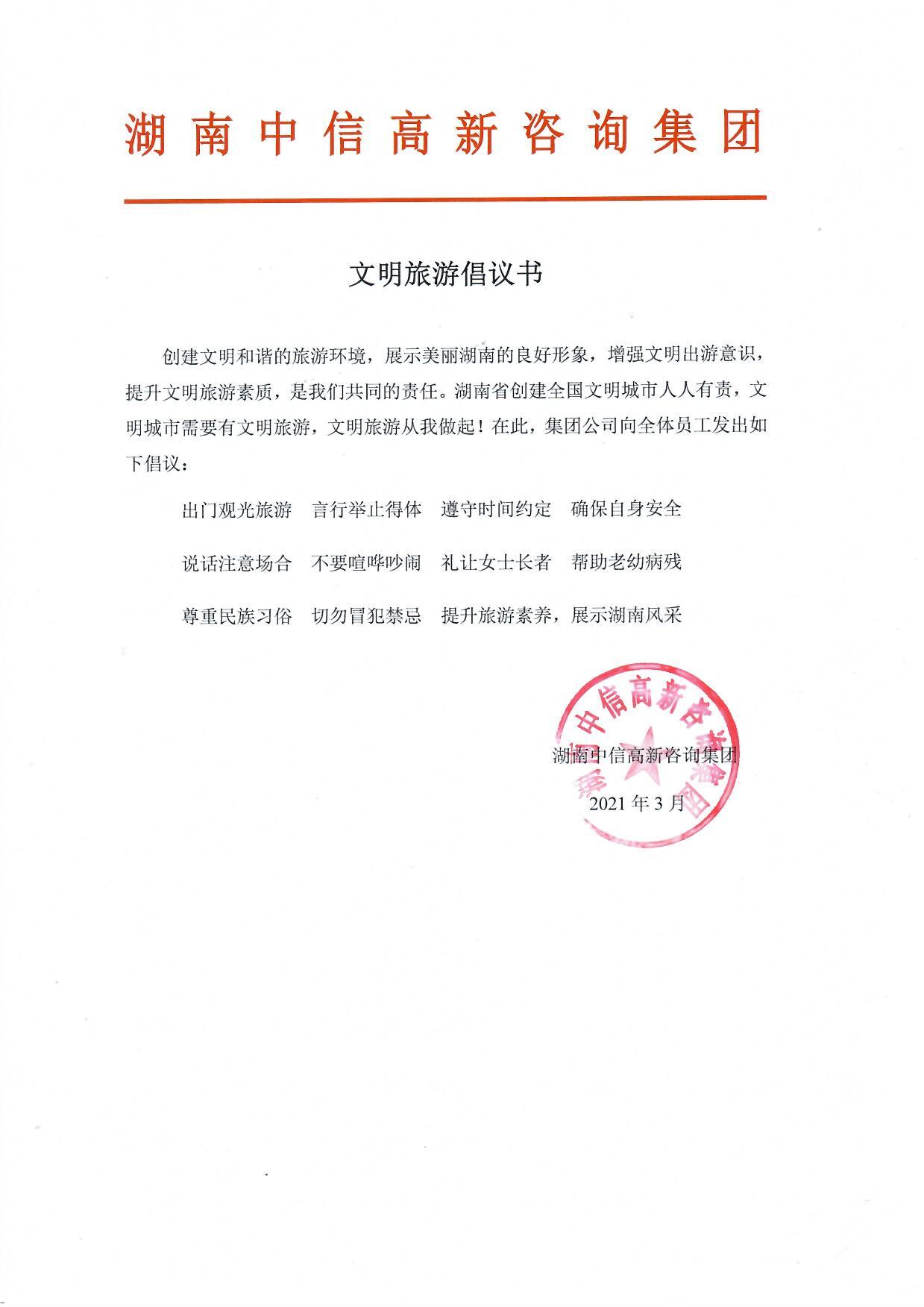 湖南中信高新咨询集团 文明旅游倡议书