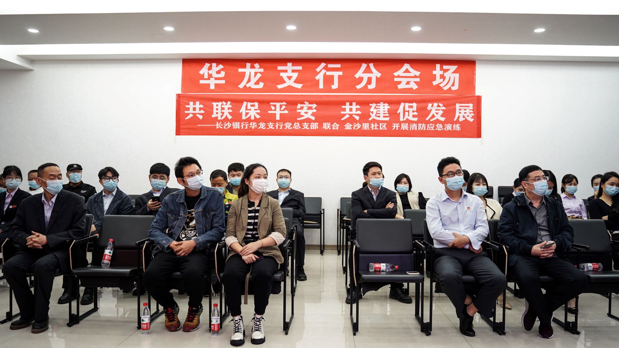 为增强我们整栋办公楼工作人员的消防安全意识,提高工作人员对突发火灾的处理能力,掌握正确使用灭火器等消防设施技能。我集团公司和长沙银行华龙支行联合金沙里社区聘请消防大队专业教练于11月3日下班后进行下半年安防知识培训和实操、消防培训及应急演练。