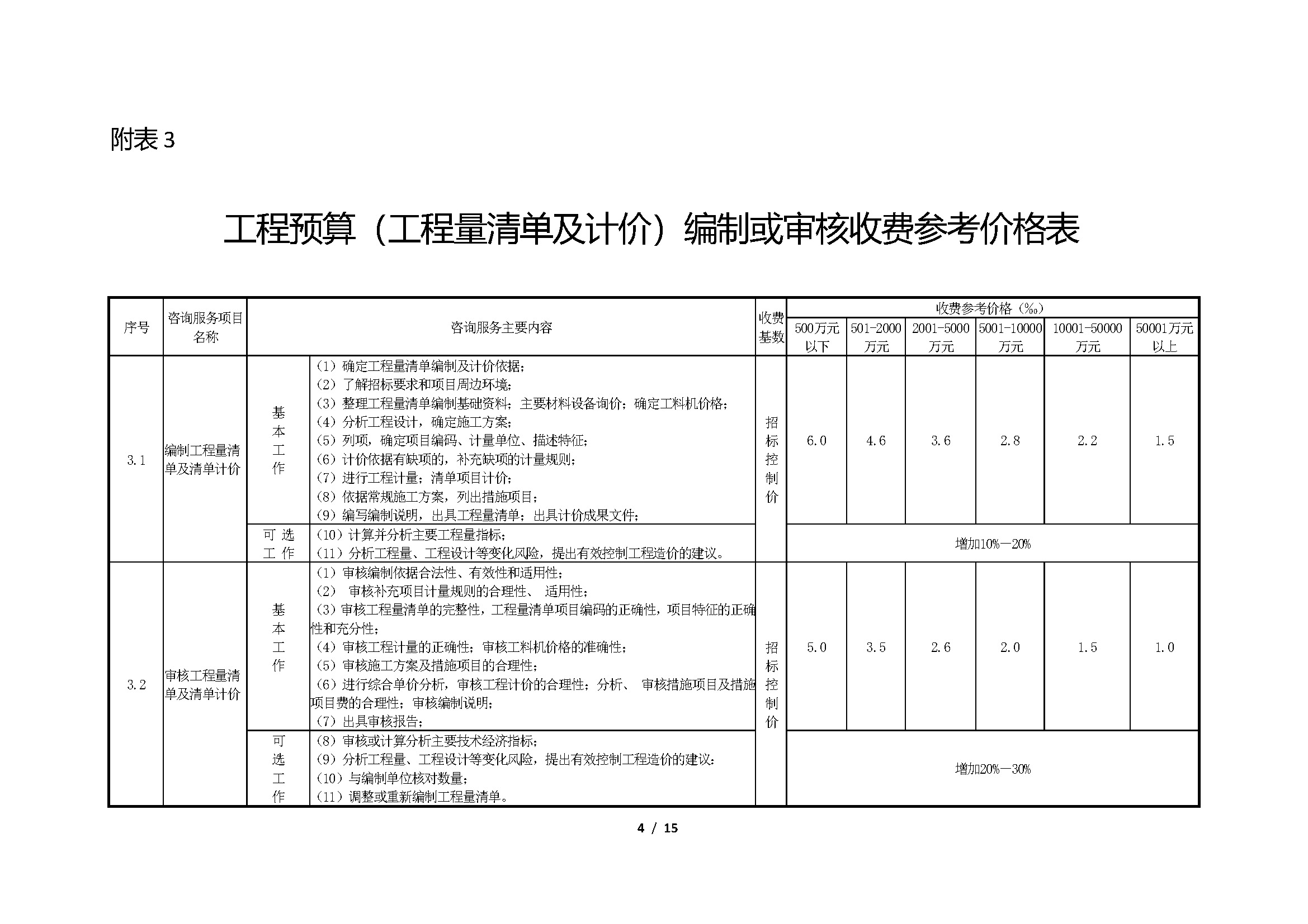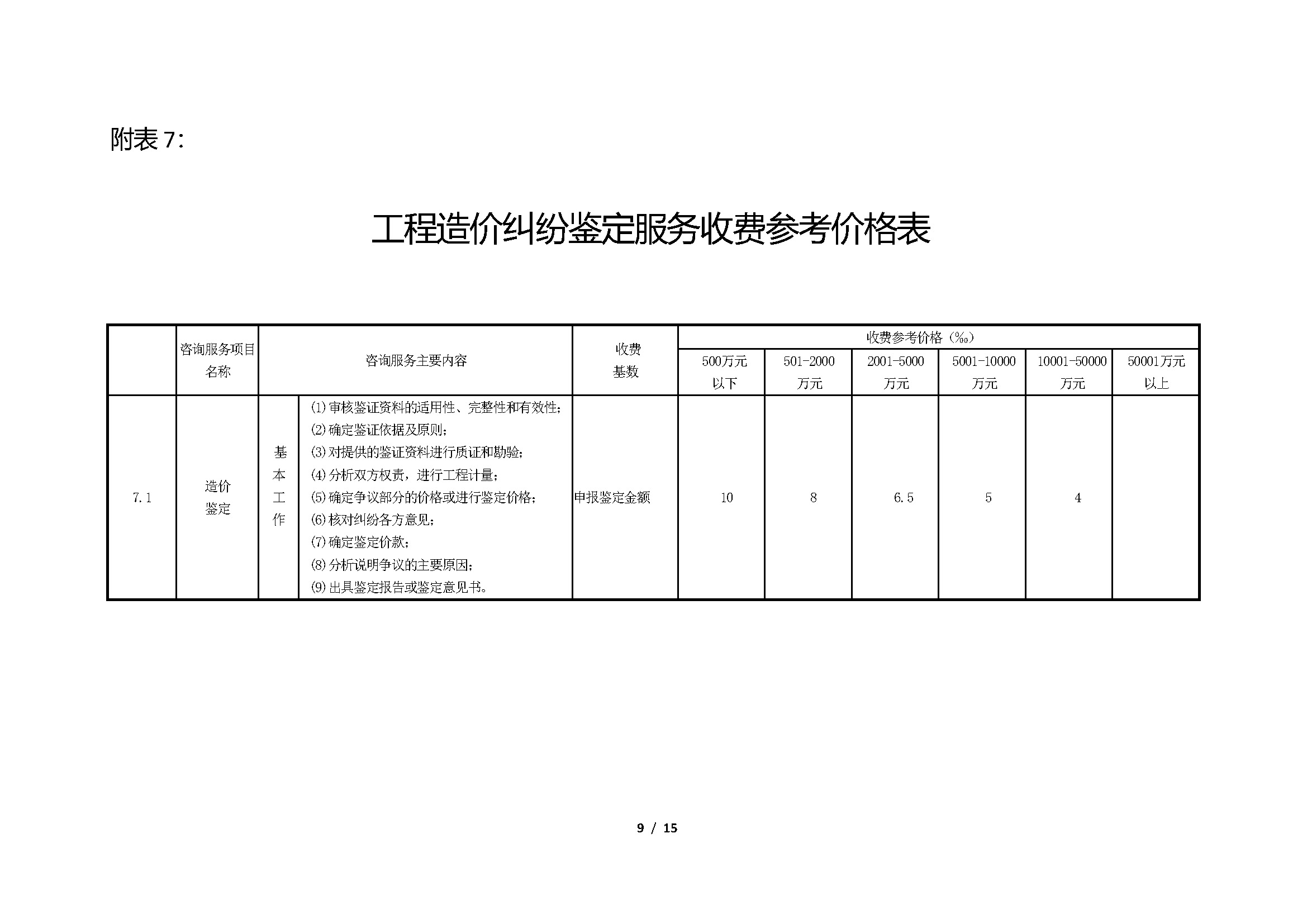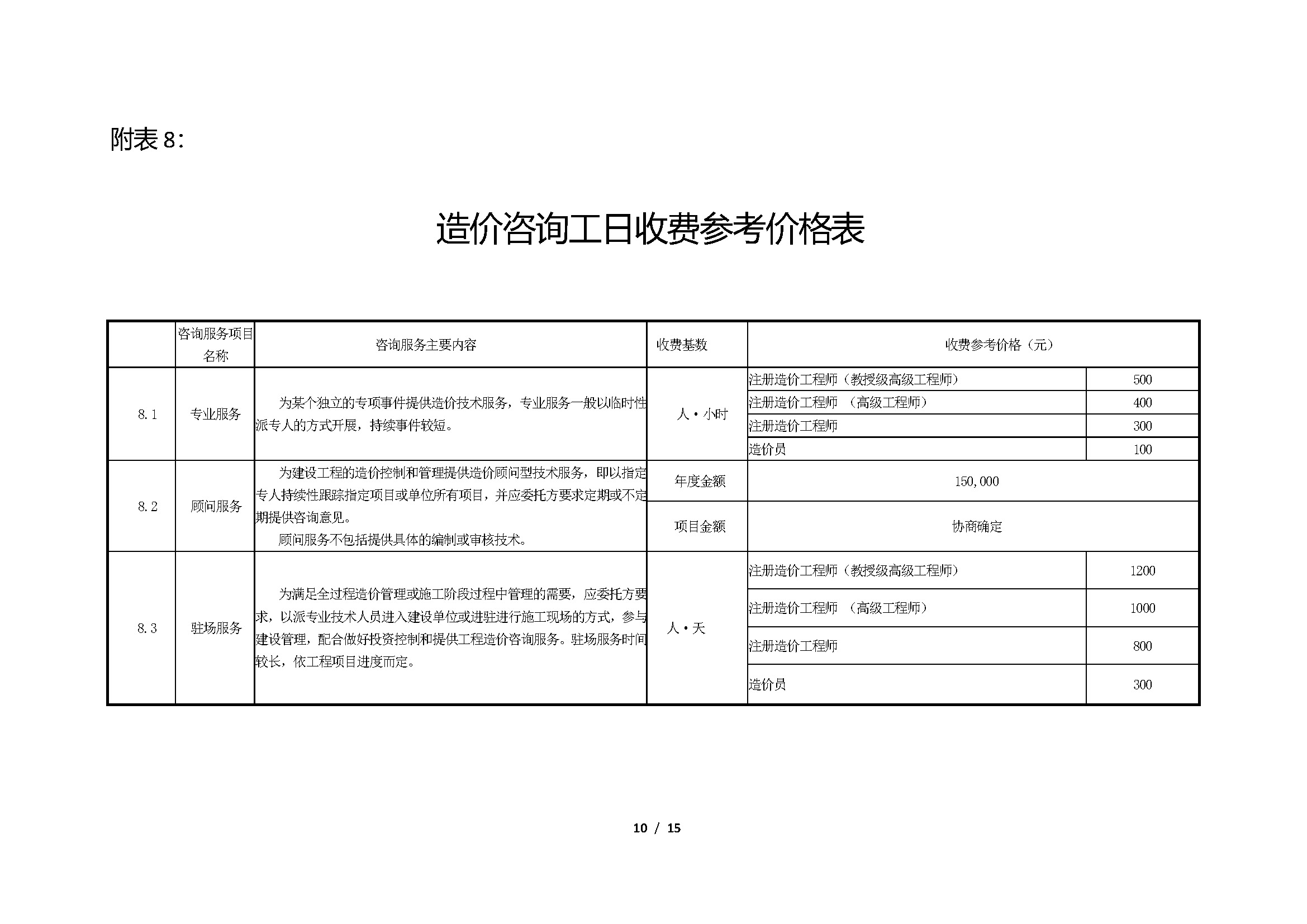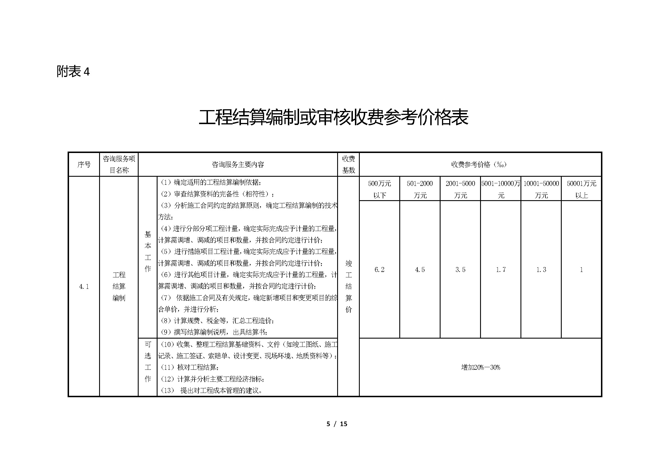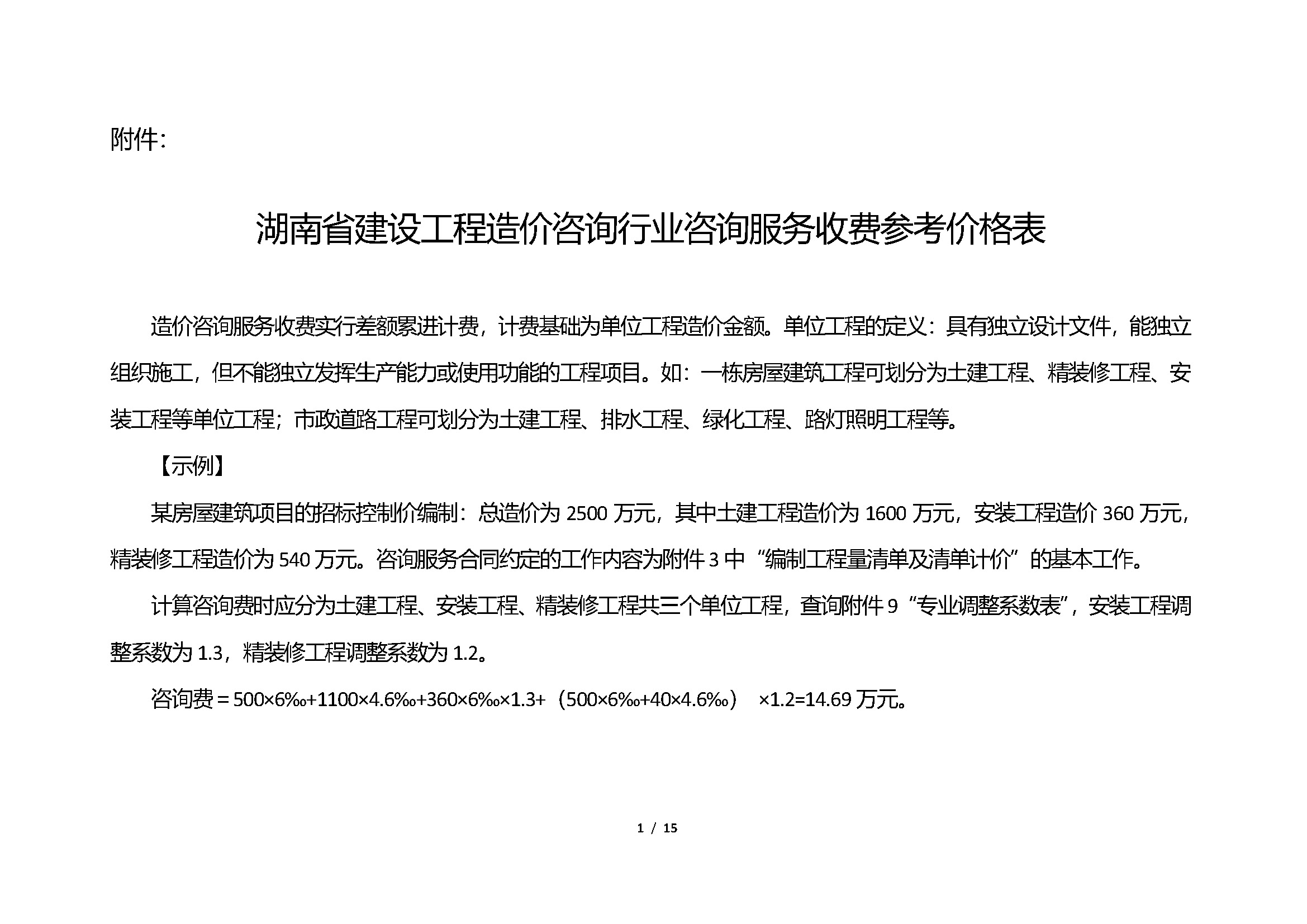 湖南省建设工程造价咨询行业咨询服务收费参考价格表